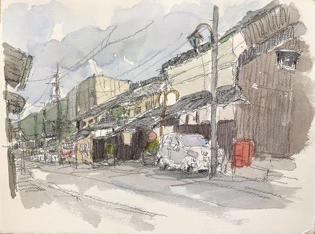 描き終えて : この後、丹山酒造を描くために近くに移動した。